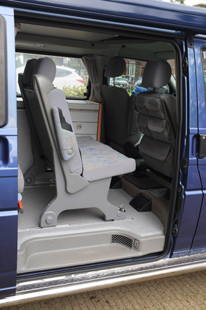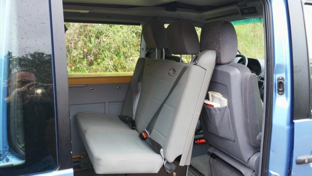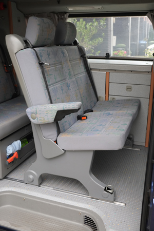 Ik was al een tijdje aan het rondkijken naar een tussenbankje (Zusatzsitbank) voor mijn California omdat ik, vooral bij de binnenlandse ritten, regelmatig een of twee zitplaatsen tekort kwam. Op de langere buitenlandse reizen zal het bankje meestal thuis blijven. Als het bankje geplaatst is kan de lade van de keuken nog steeds open (zie foto) en bij mij is het linker deurtje een schuifdeur, dus dat kastje is ook nog toegankelijk.