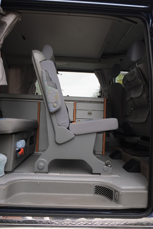 En deze variant is dan ook interessant; een Generation bankje in een Marco Polo en ook nog achterstevoren geplaatst. Niet de bedoeling van Westfalia want de linkerzijde die normaal naar de keuken gericht is, is niet helemaal bekleed. Ik weet ook niet zeker of de borgingspennen dan wel goed inklikken.