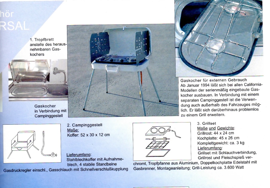 Uit een folder met Westfalia accessoires. Het onderstel was dus van Westfalia, en niet van Brandrup. Op de plaats van het verwijderde gasstel kan je ook nog een afdruipplaat leggen (plaatje linksboven).