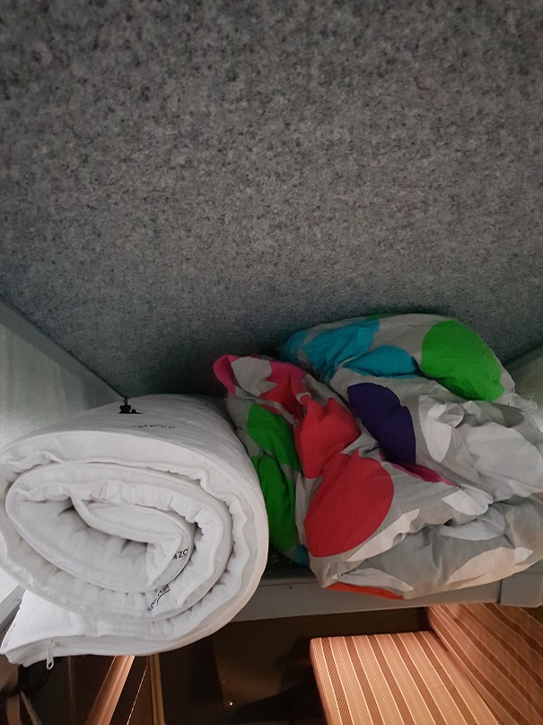 Het weg leggen van al de slaapspullen op het halve vaste dak is echt handig, de bus is gelijk weer leeg en bruikbaar.