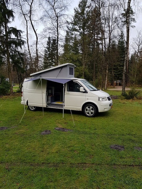 Wat goed, lekker kamperen. Zelfs de luifel uitgezet! Wanneer komt het raam erin? Dat geeft nog meer plezier, zeker met de koudere dagen wanneer je binnenzit.