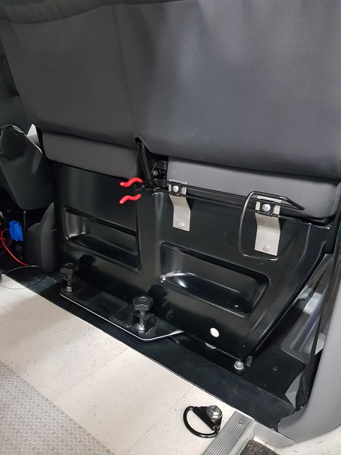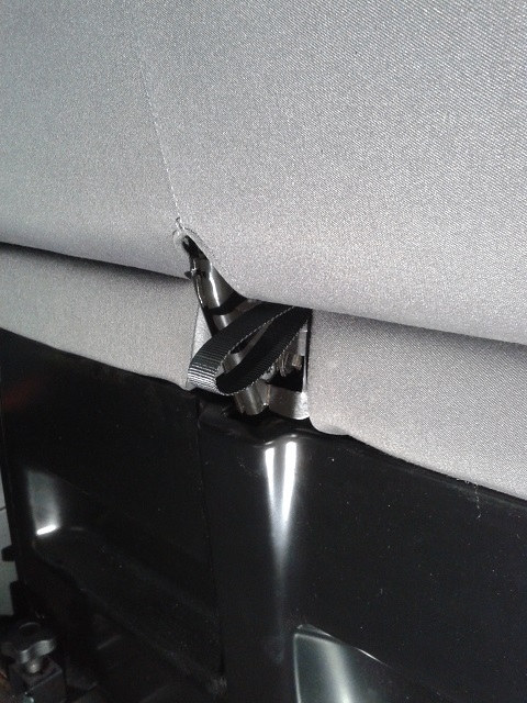 Ik heb het lusje van de leuning van de bank omgezet naar de zitting kant, het was heel onhandig met de blusser. Als de leuning plat gaat dan valt die ook in een vergrendel stand, maar je kan dan niet bij lusje.