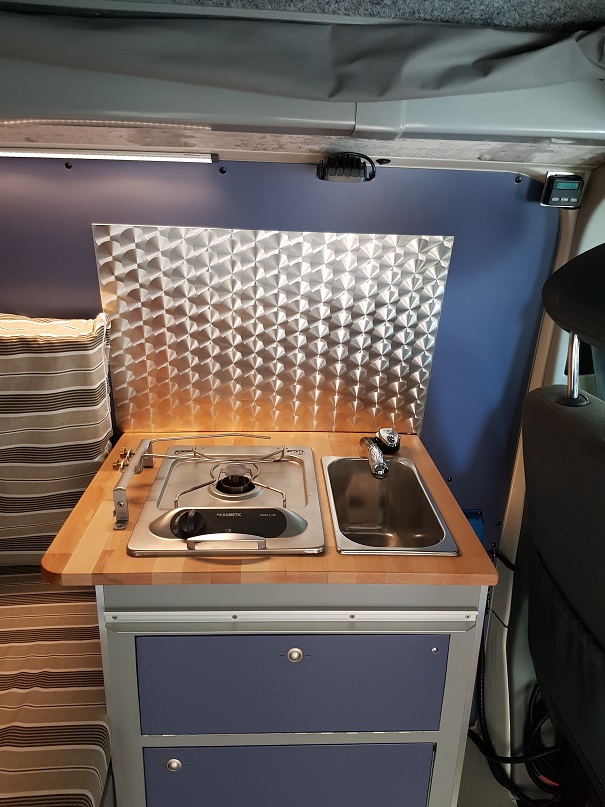 Ook nog even vandaag de aluminium zonnetjes plaat voor achter de aanrecht op maat geknipt en vast geplakt. Gewicht komt 200 gram bij.