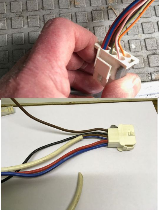 Op je onderste foto zie je een wit snoertje, middelste 2 aansluitingen, hier kun je met een universeelmeter even de weerstandswaarde meten. Het witte snoertje gaat naar de NTC weerstand in je koelkast..