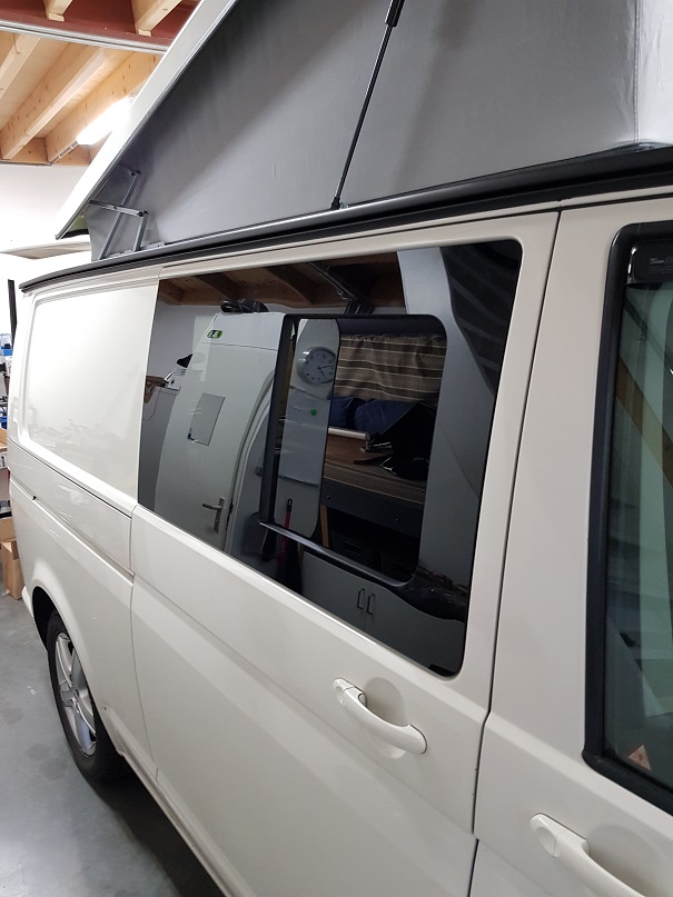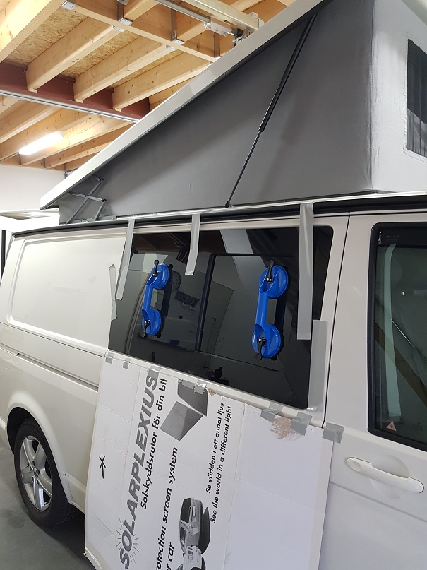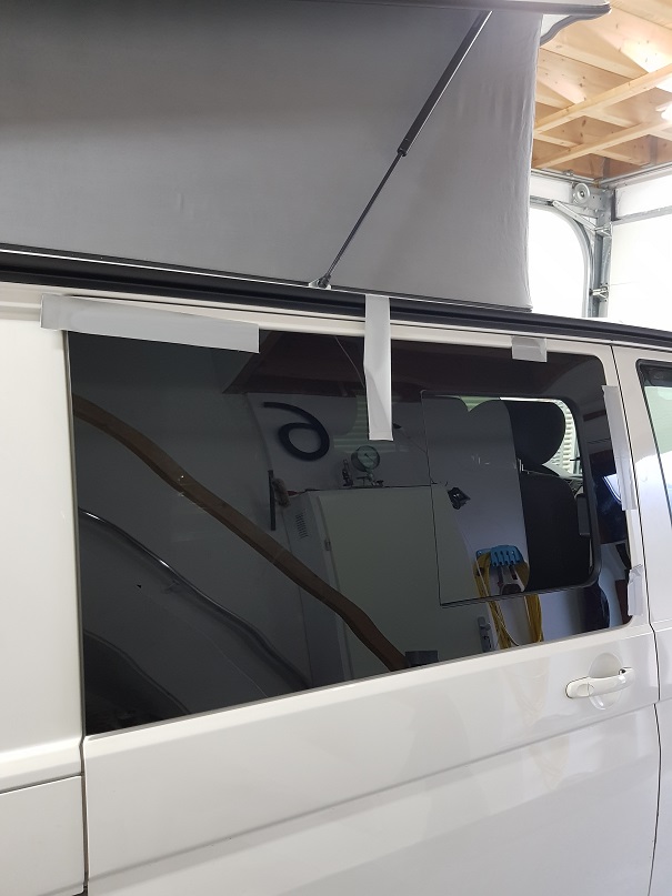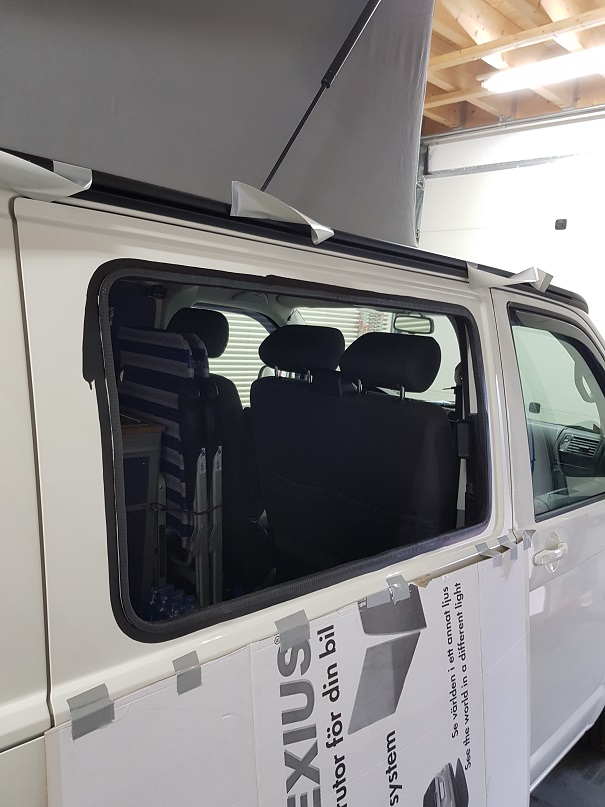 Gisteren is de bredere edge trim al aangekomen en zojuist had ik even een uurtje tijd over, dus raam er in geplakt. De edge trim geplaats en toen eerst passen en aftekenen, primer en activator aangebracht, laten drogen en toen kit op de bus. Vervolgens het raam in positie vast geplakt met tape. Ook nog een paar leuke stickertjes gekocht. Groeten,