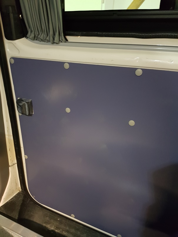 De binnen afwerking van de schuifdeur er even afgehaald om te controleren of er geen zaagsel resten in de schapenwol isolatie zat, van het inzagen van het raam, die later zou kunnen gaan roesten. Nee dus alles mooi schoon. gelijk de oude bruine bevestigings klikjes vervangen voor nieuwe lich grijze, veel beter. Groeten,