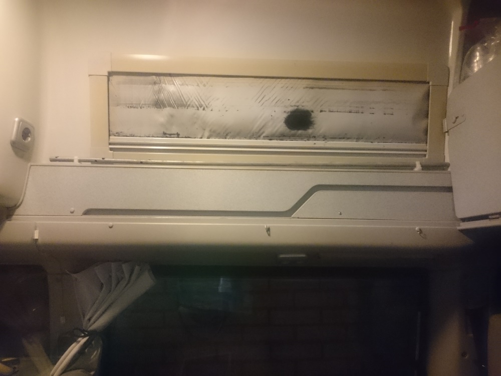 En zoals jullie, aan de bijgeleverde foto kunnen zien, is ons verduisteringsgordijntje boven aan vervanging toe.