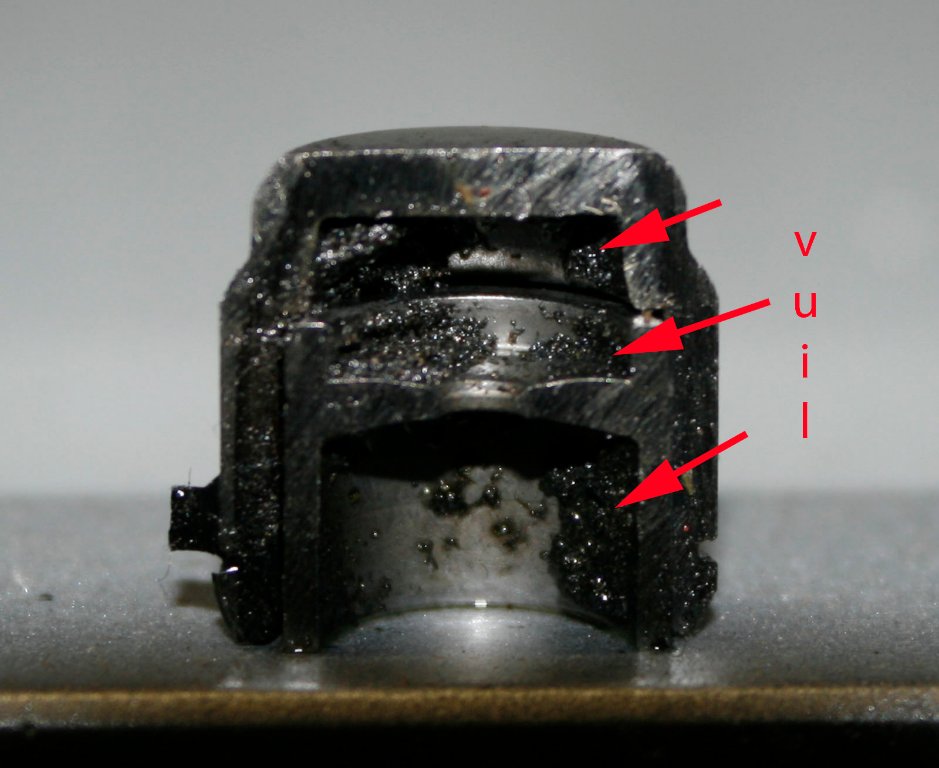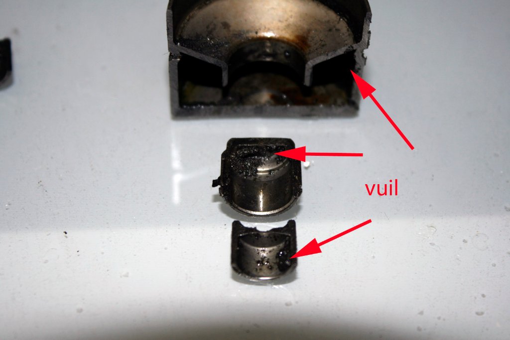 Nadat het open gemaakt was zag ik dit: Allemaal zwarte drap, wat als het eenmaal in de klepstoter zit, er niet meer uit kan.