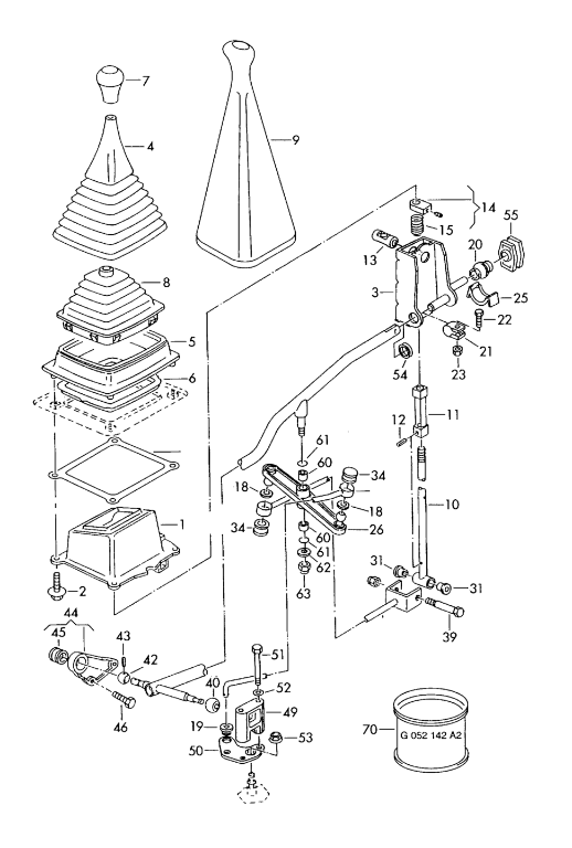 Onderaan de pook (helemaal achteraan) is de geleidingsbus versleten en heeft mijn inziens teveel speling. zie tek. De kunststof geleiders op en neer (2x?) die om de stang zelf zitten (7D0711124A) wil ik ook vervangen.