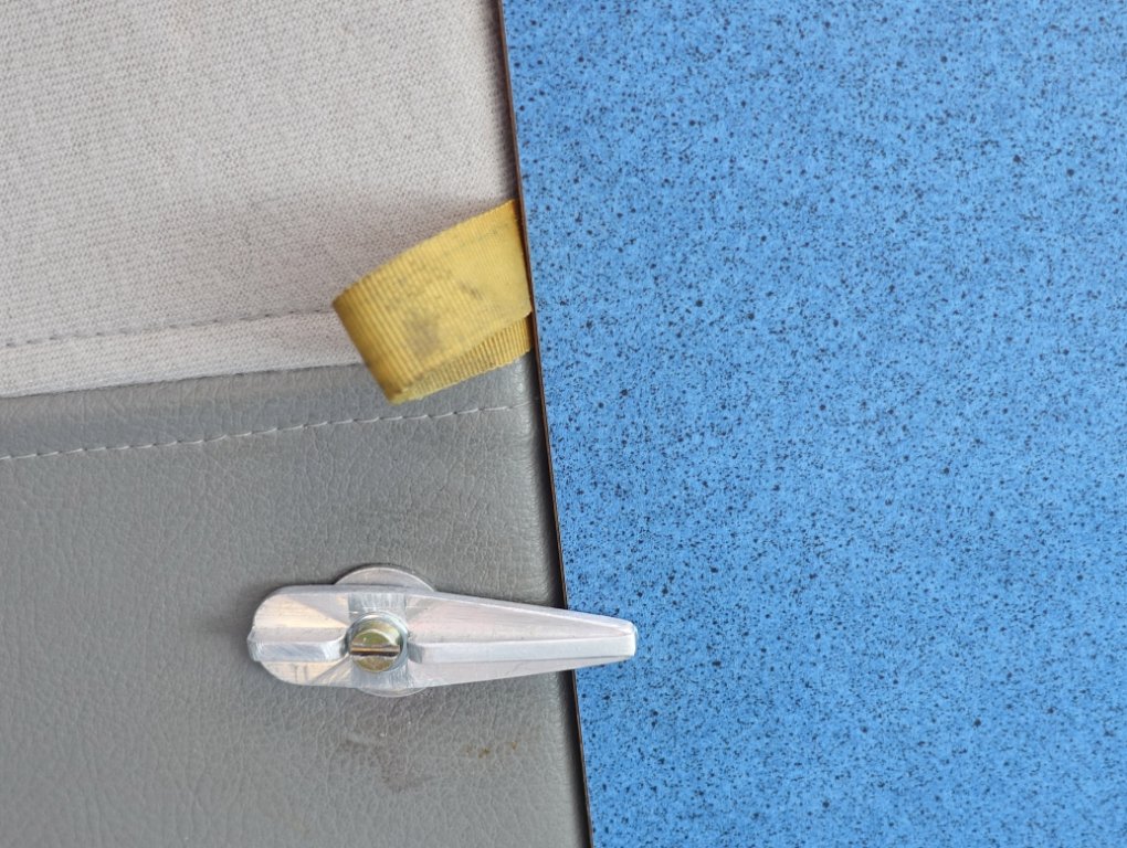 Het is een origineel deurpaneel van hardboard, van een "kale" T4 waarop we zelf bekleding op hebben aangebracht.