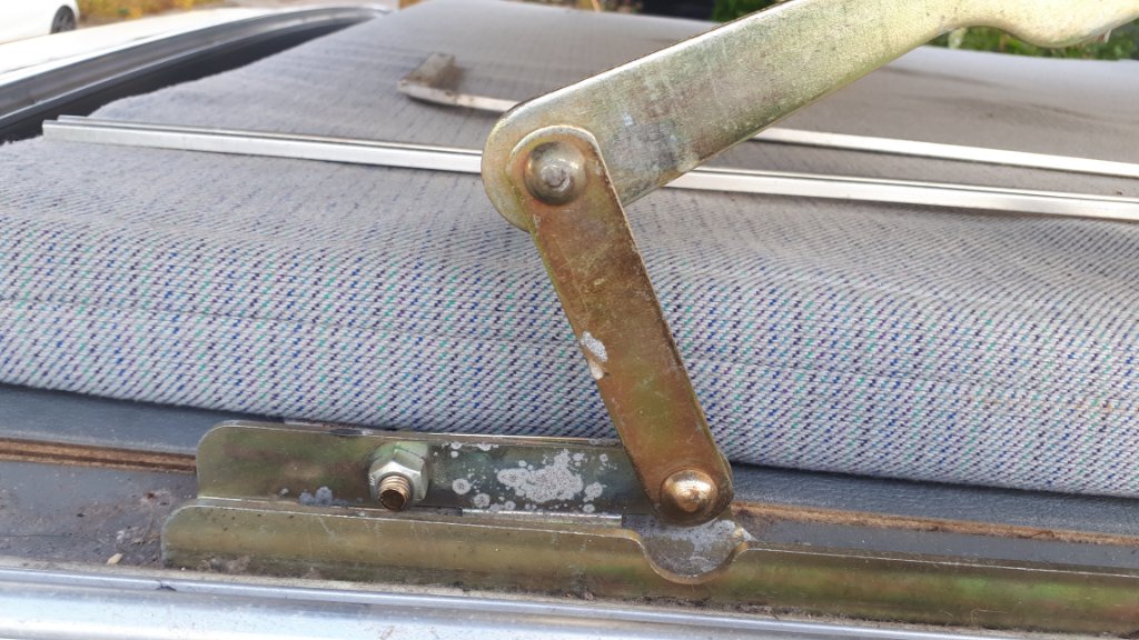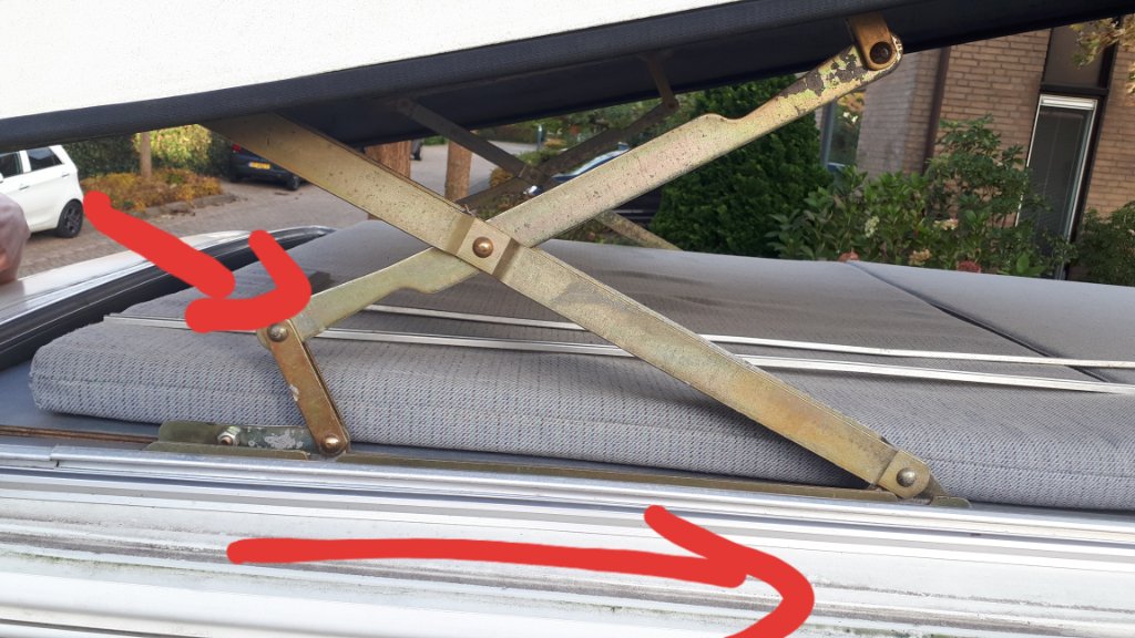 Ik denk dat het onderste kleine staafje met moet en klinknagel ook moet bewegen bij het openen van het dak.