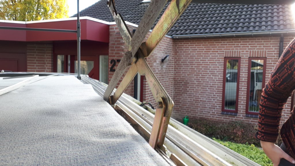 De scharnieren draaien allemaal heel soepel... mogelijk een keer iets zwaars op het dak gelegen ofzo...