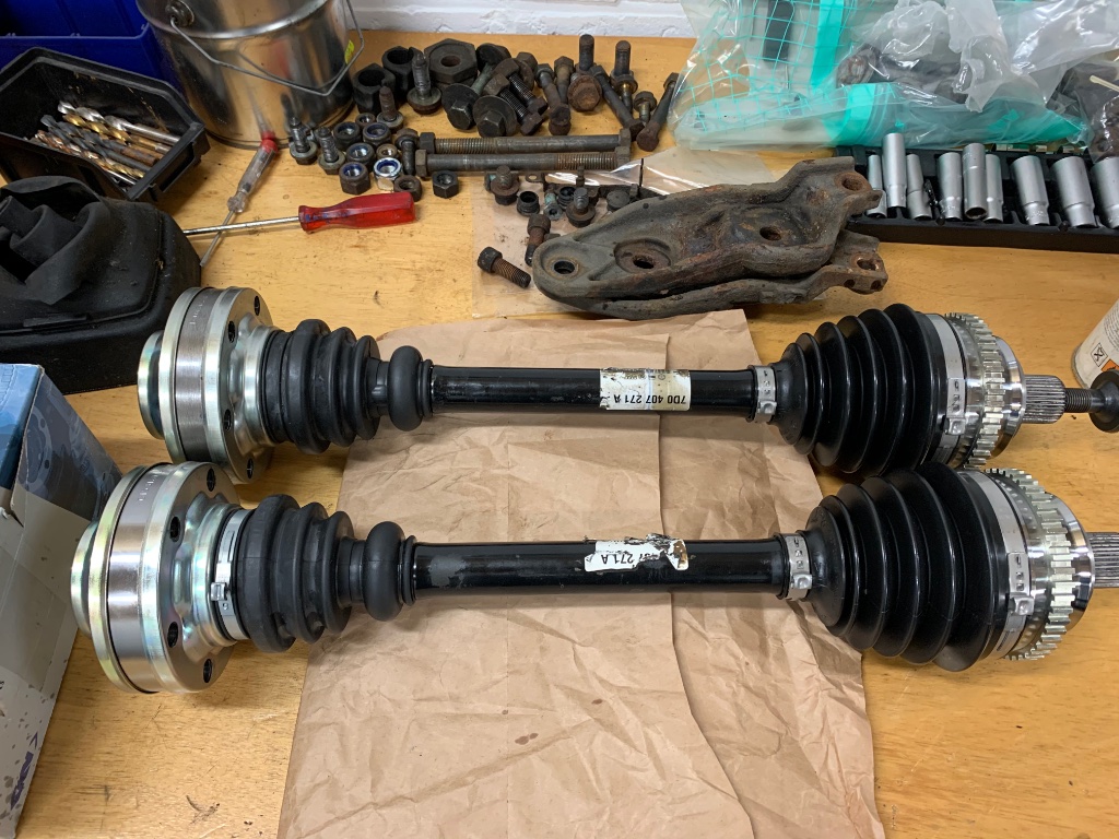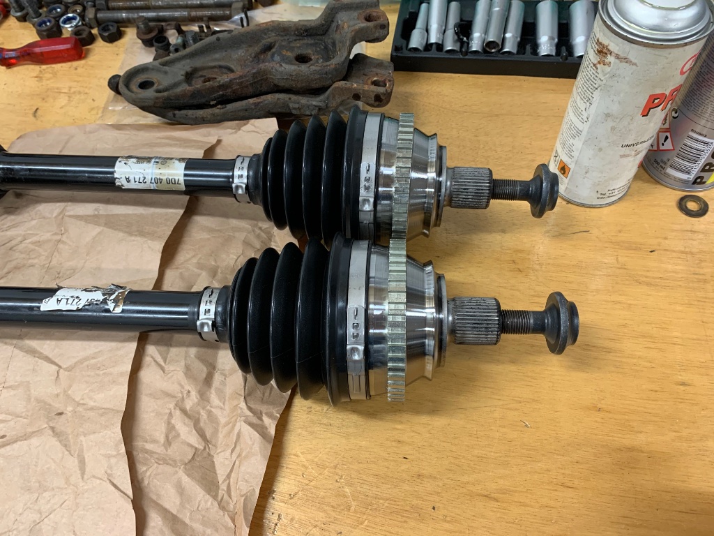 Nieuwe homokineten met hoezen geplaatst. Moet alleen nog de binnenste klemmen plaatsen, de bijgeleverde bleken de verkeerde maat.