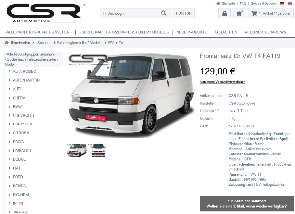 De CSR lip had ik uiteindelijk gevonden voor 52€ incluis transport op een Russisch ogende website, in het Duits met Chinees mailadres. Dus meteen besteld. Wat kan er misgaan?!
