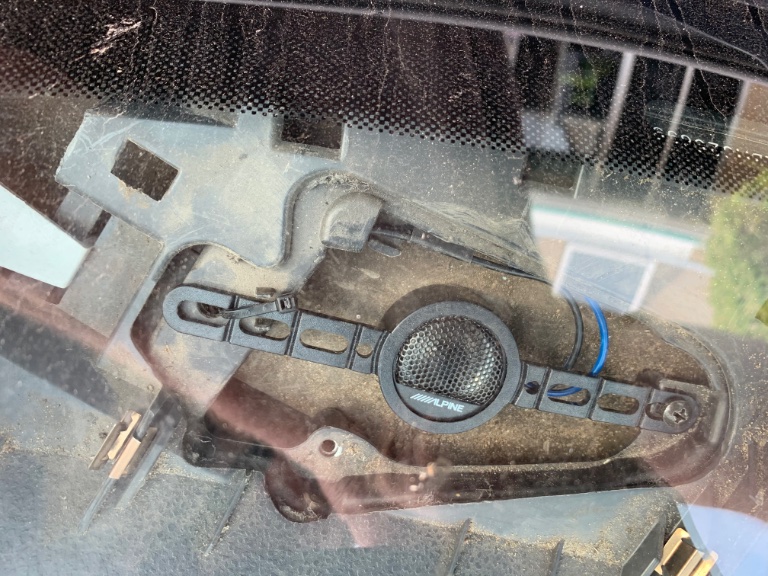 Tweeters netjes onder de roosters, en de speakers met pas ringen in de deuren. Alles met tochtband afgedicht onder de ringen, anders lekt ie op de binnenste cirkel met gaten.