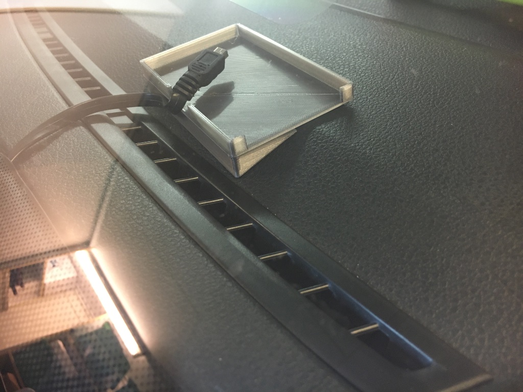 Ik heb me in deze bizarre tijden geprobeerd enigszins te bekwamen in Fusion 360 (een 3D tekenprogramma) waarin ik als eerste projectje een passend ‘bakje’ voor de HUD tekende wat diezelfde knik in de bodem heeft als het dashboard. Zo laat het doosje zich goed vastzetten met dubbelzijdig tape. Een familielid van me heeft mijn ontwerp op een 3D printer voor me uitgeprint.