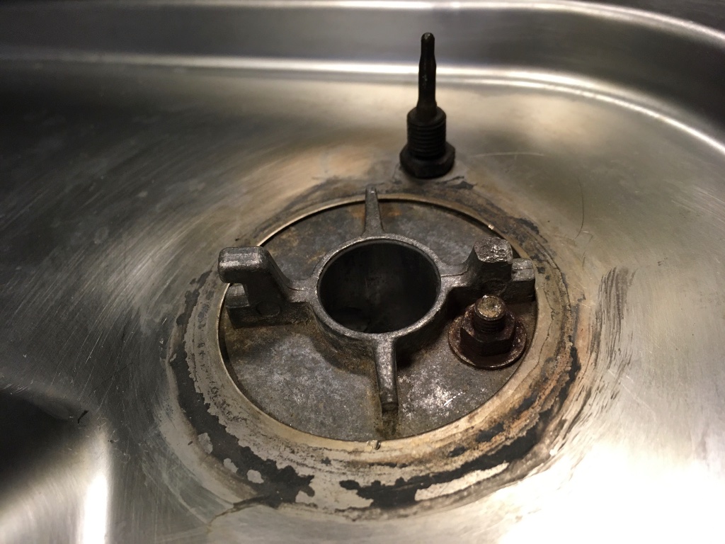 Helaas bleek het kit (?) wat om een van de branders zat een reden te hebben. De bajonet sluiting van de voet van de branderkop (dus waar je hem op vastdraait) is kapot. Iemand goede suggesties om dit op een verantwoorde manier te maken?