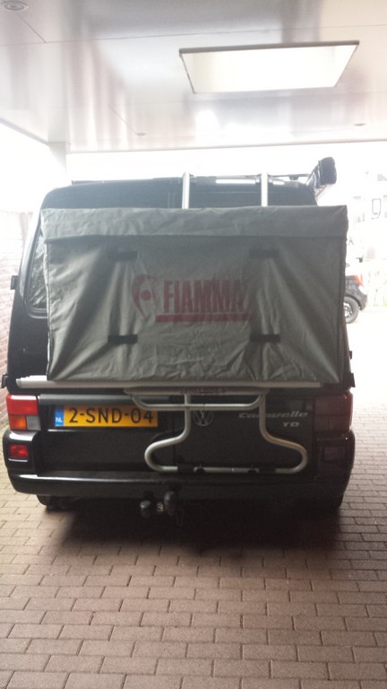 Hierop kan dan een bagagebox, waarin onze tuinstoelen en tafel en nog wat andere dingen in kunnen.