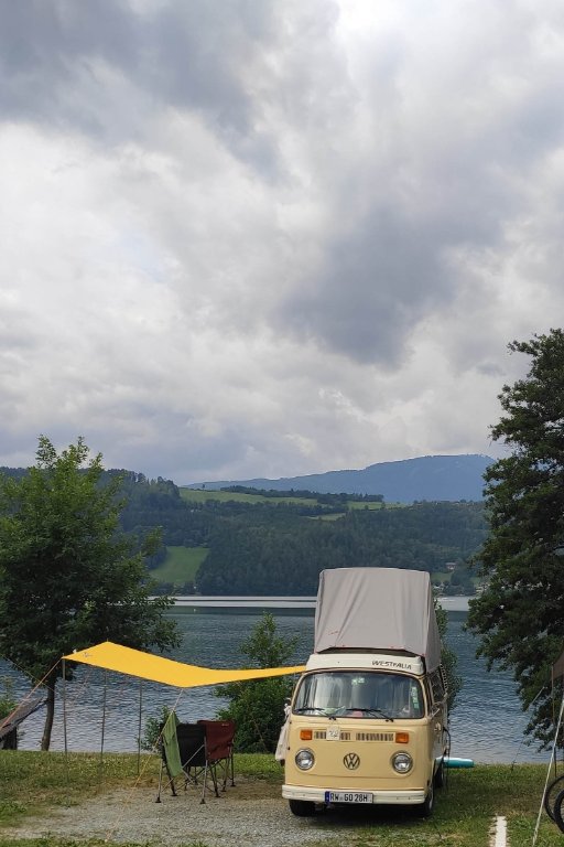 Veel busjes op de camping, de meeste T5, maar ook  wat T4's en nog een leuke T2.