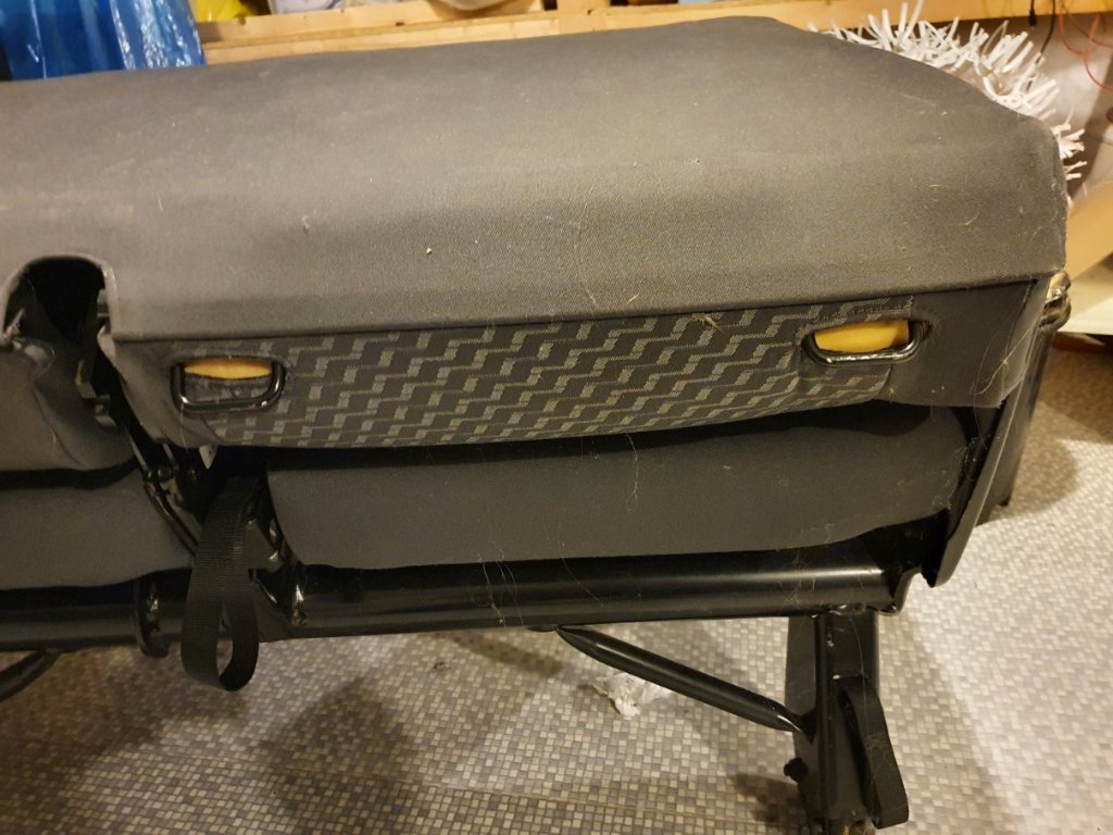 dan zou je om gemakkelijk te kunnen werken, de rugleuning kunnen verwijderen en zo aan de onderzijde van de rugleuning kunnen monteren, hetzij met lassen, of zoals ik het zelf zou doen, met blindklinkmoeren trekken, en met bouten monteren.