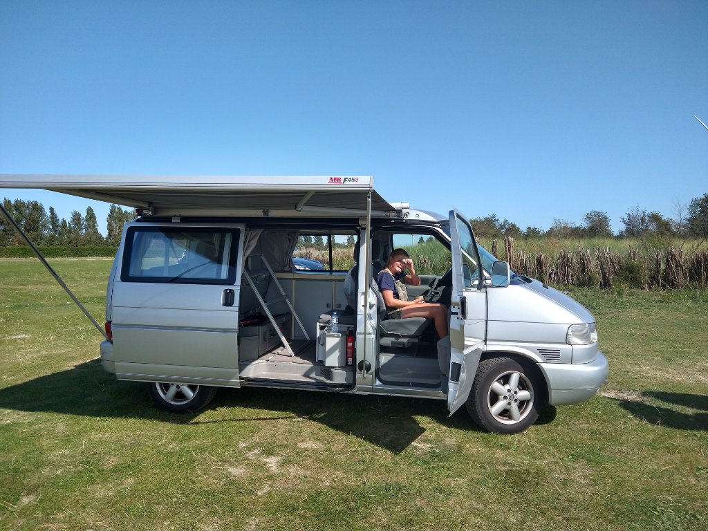 We hebben een t4 1994 lange wiel basis. Het gaat vooral over dat de schuifdeur open kan tijdens als het al miezert, zodat het bed, bank niet nat wordt.