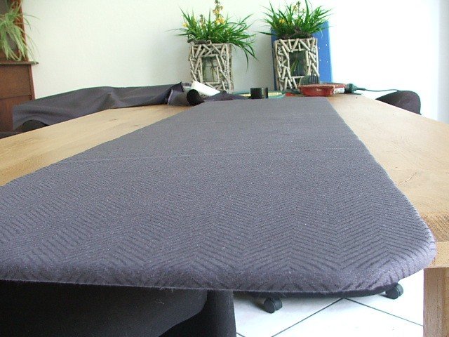 Ik heb zelfklevende stof genomen van de firma conrad, werkt prima en geen bobbeltjes te zien.