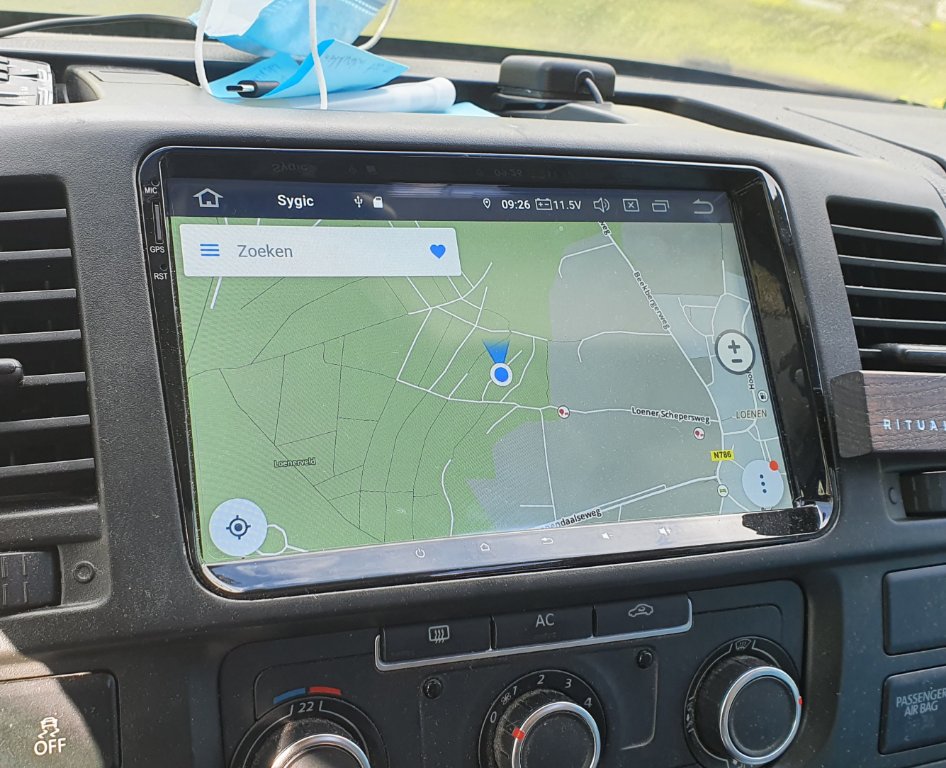 Ook zit de radio weliswaar hoger ingebouwd, maar je moet niet vergeten, dat de zithouding in een T5 ook anders is.