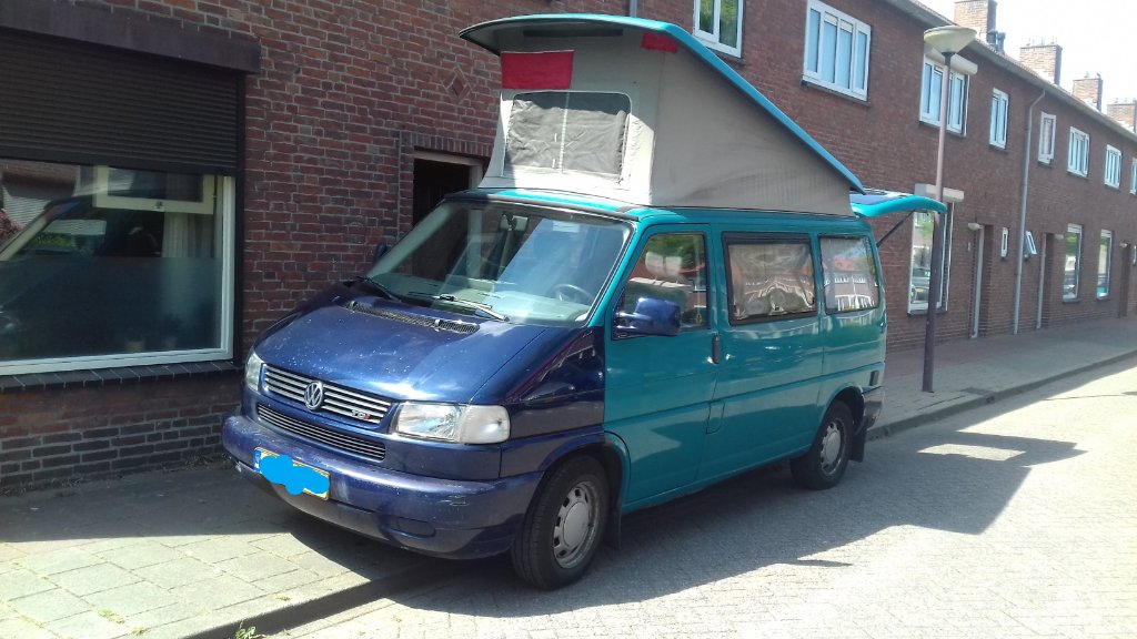 hoi Hanz, neus blok dash en schuifdeur komen indd uit dezelfde bus. geen idee of t n kamper of gewone t4 bus was, ik dacht n 2.5 van '98 (ga t toch nog eens na vragen ;) t origineel califalia gedeelte is van eind 95 indd :peace