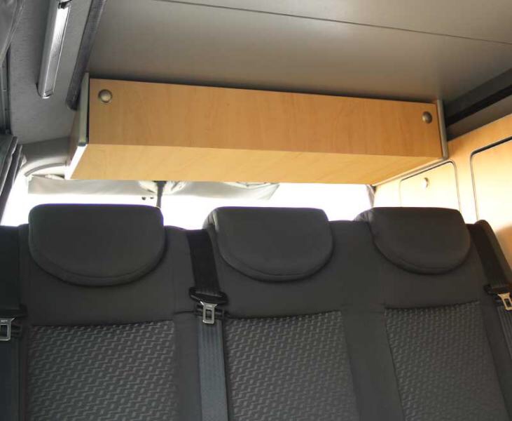 Als je altijd met z'n tweeën reist kan je in het hefdak slapen en beneden wat bank/bedruimte opofferen voor meer (hogere) kasten. Als je de indeling beneden wilt behouden dan kan je ook denken aan bovenkastjes. Op het forum kan je met de zoekfunctie hiervan wel voorbeelden vinden.