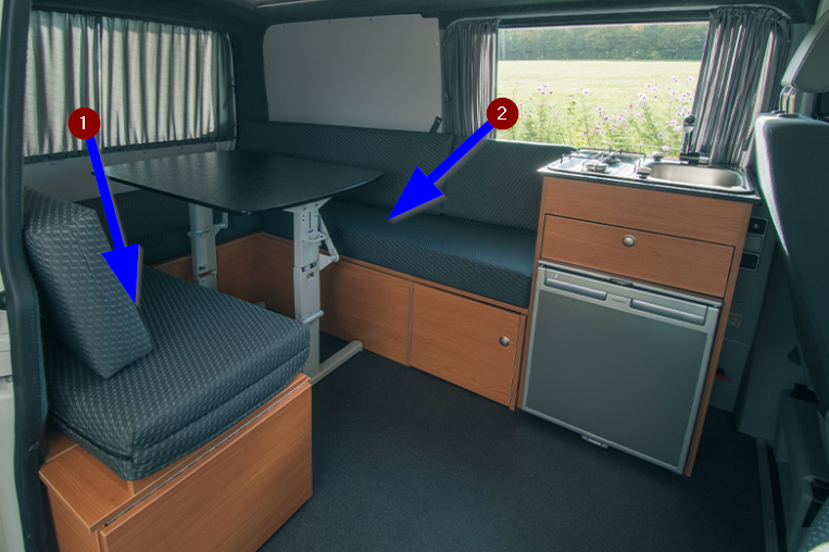 In een klein camperbusje is het altijd woekeren met de ruimte en moet je keuzes maken want je kan niet alles hebben. Ik zie dat in jullie camper veel leefruimte is maar daardoor mis je dus opbergruimte.