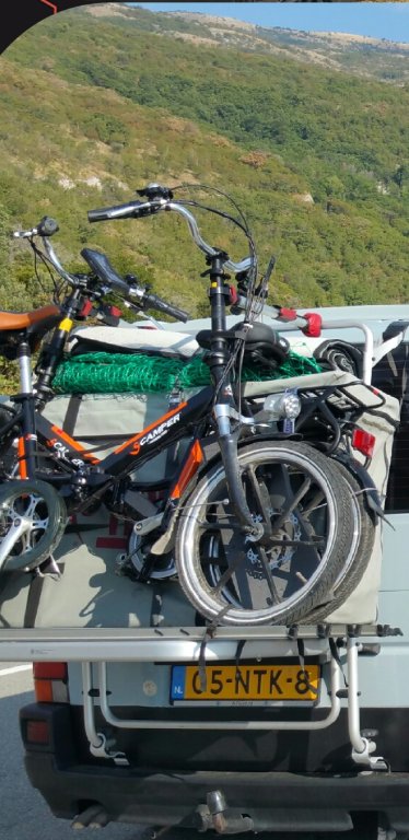Je kan ook denken aan een bagagekoffer op de trekhaak of op een fietsenrek. Daar kan je dan de spullen in doen die je niet binnen nodig hebt, zoals stroomkabel, oprijblokken, stoeltjes, wandelschoenen, regenkleding en dergelijke. Dan kan je alle ruimte binnen gebruiken voor kleding en toiletzaken.