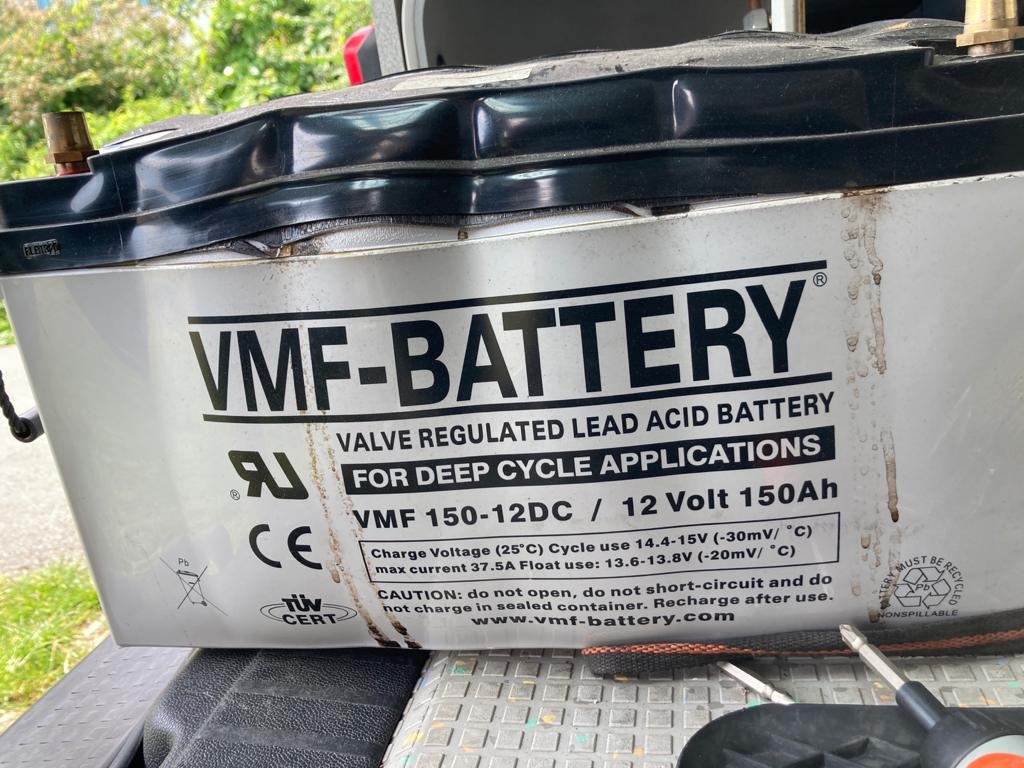 Enfin: de bus is nu thuis en de accu heb ik uitgebouwd: lijkt ontploft.
