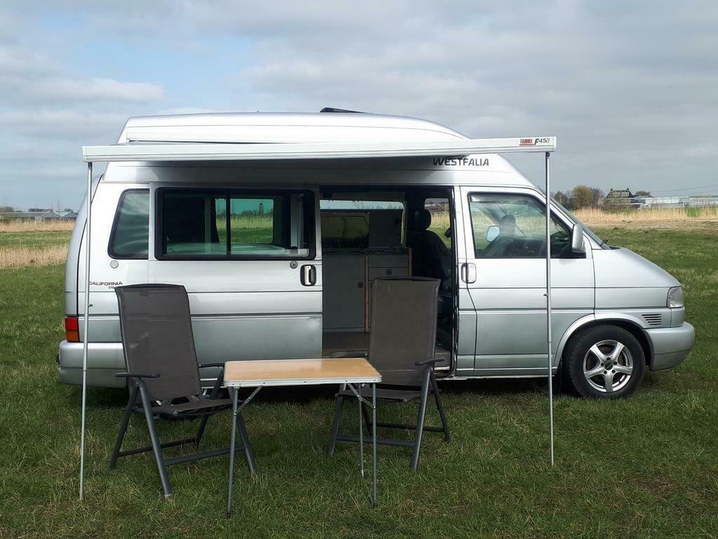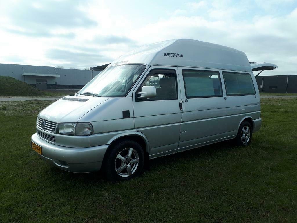 Weer een bijzondere en zeldzame 'originele' Westfalia uit 2003. In dit geval volgens de adverteerder een van de laatste in verlengde uitvoering. En om te benadrukken dat het een originele is zijn aan alle kanten Westfalia stickers op het dak geplakt, alleen jammer genoeg niet op de plek waar Westfalia ze zelf plakt.