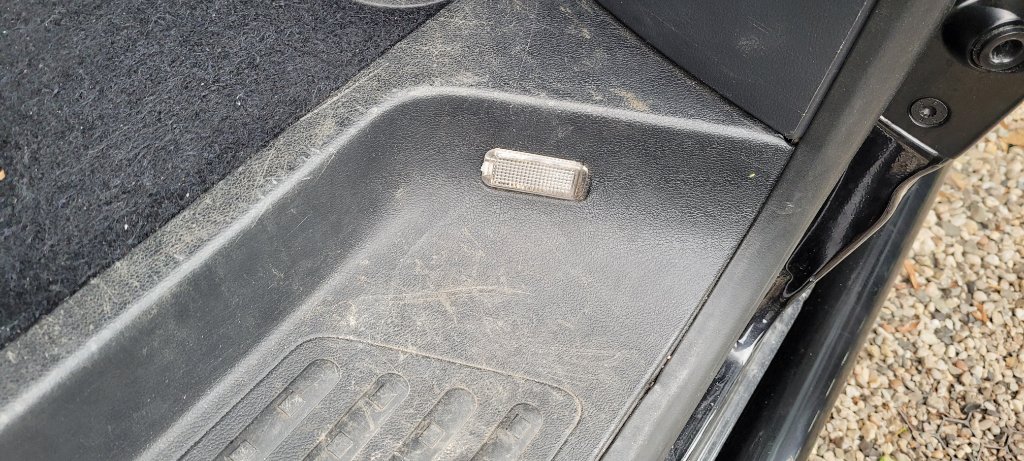Nu vind ik het raar: voorin zitten links en rechts netjes 'caravelle 'instapbakvoetlichtlampjes' (of hoe ze ook heten :bonk ) - achter zit een heel basic lampje met glaasje ...