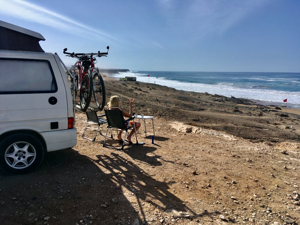 Campings zijn er niet op deze twee eilanden en alleen op Fuerteventura één camperplaats, dus vrij overnachten is een "noodzakelijk kwaad". Een zonnepaneel is eigenlijk onmisbaar, want je rijdt te weinig om de accu op te laden. Verzorgingsplekken voor schoon water en het lozen van je toilet en afvalwater zijn op beide eilanden wel te vinden.