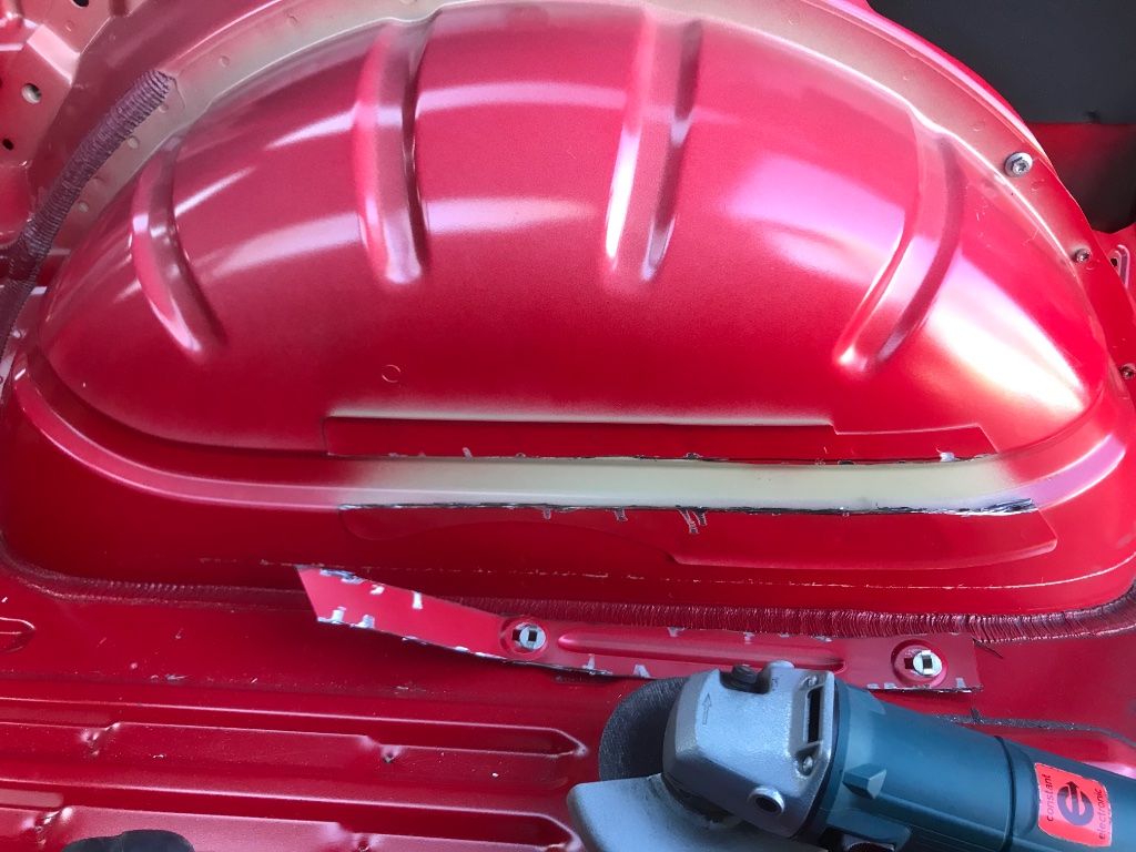 Om de wielkastbeschermers goed te laten passen moest er wel wat geslepen worden. Krikbevestiging, bevestigingen kunstof paneel nu eruit.