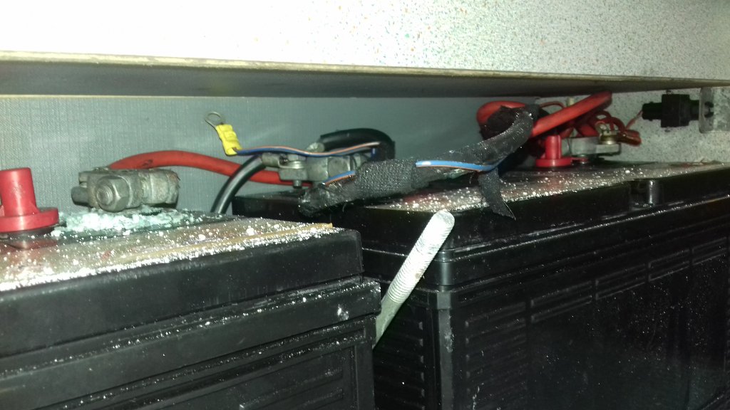 buurmna et langst geweest (mn eige multimeter kaduuk, t zou es mee zitten) hele pleuris zooi door gemeten: start accu goed, dynamo(120Ah) goed, 2 huishoud accu's beiden stuk, bekabeling lichte schade zo ook de accu's zelf(plus ze staan bol) en ook brandmerken in de bekleding tegen de buiten kant daar... de massa kabels lagen ook gruwelijk dicht langst de 2de+.. beide accu's nu losgekoppled en de +en geisoleerd, morgen ff vanyard? 2de hands accu's erin voor nu en kabels safe én netjes leggen... seizoentje testen en als alles goed blijft tzt/volgend jaar nieuwe erin denk ik?