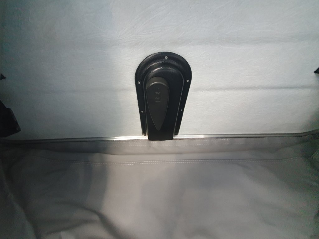 Overigens kunnen wij met regen ook blijven ventileren door de afdichtingen voor de roosters aan de bovenzijde los te ritsen en iets naar binnen te trekken, zonder dat het inregent.