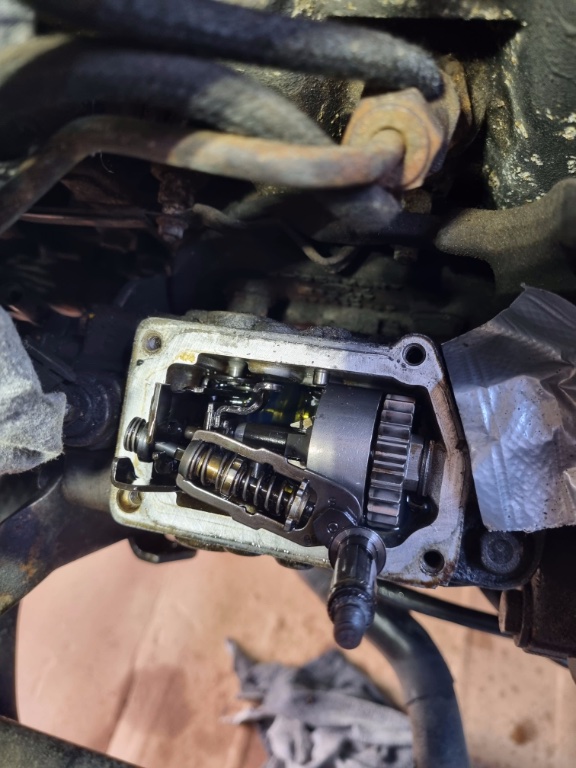 Waarschijnlijk nog de originele, zat zo vast als een huis. gelukkig was de Bosch garage zo aardig om mij een vork te lenen die ik er tussen kon slaan.