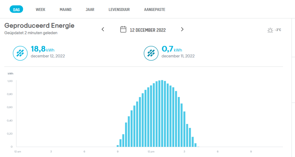 Ik begrijp dat het lastig is om de bus met panelen aan de praat te houden, een benzine aggregaat staat dan ook al op de verlanglijst, ik zou alleen graag zo veel mogelijk met zon opwekken, vandaar dan ook mijn poging zo veel mogelijk paneel op het dak te krijgen, al moet ik toegeven dat ik schrik van de output van de panelen in je grafiek, dat ziet er niet zo mooi uit.SyncRoon schreef: 25 feb 2023, 00:39Ik zou dat nog eens goed doorrekenen wat je aan accuvermogen, acculader/aggregaat, omvormer(s) en verbruikers nodig hebt en wat je met die paar panelen denkt te bereiken.Graftak schreef: 23 feb 2023, 14:34 bovendien wil ik deze camper in Scandinavie in de winter kunnen gebruiken.