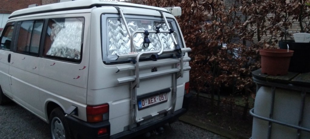 De fietsdrager is handig maar je beschadigd o zo snel je klep met een trapper of stuur. Eerste keer laat je nog spuiten, tweede keer heb ik de trapper deuk met zo een drukker eruit laten drukken en met de lakstift bij getipt.