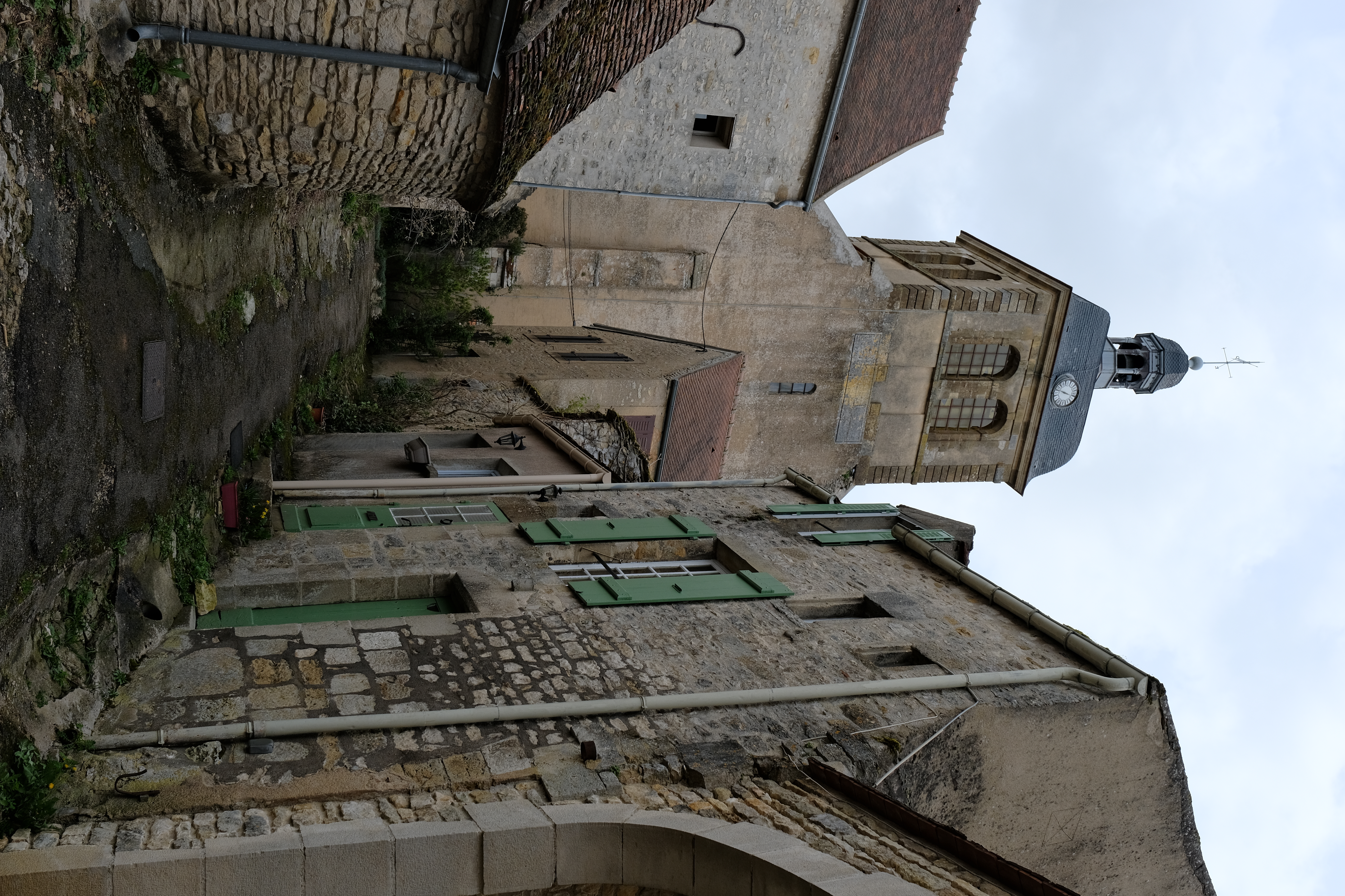 Tarpje hangt met mini-musketons vast aan stukjes pees-met-ring, gekocht op de poptopwebshop: https://www.poptopshop.nl/a-55571165/t4 ... -met-ring/. Erg handig! De tarp was wel wat losjes vastgezet, maar het opent mogelijkheden! Zicht op de basiliek van Vézélay.