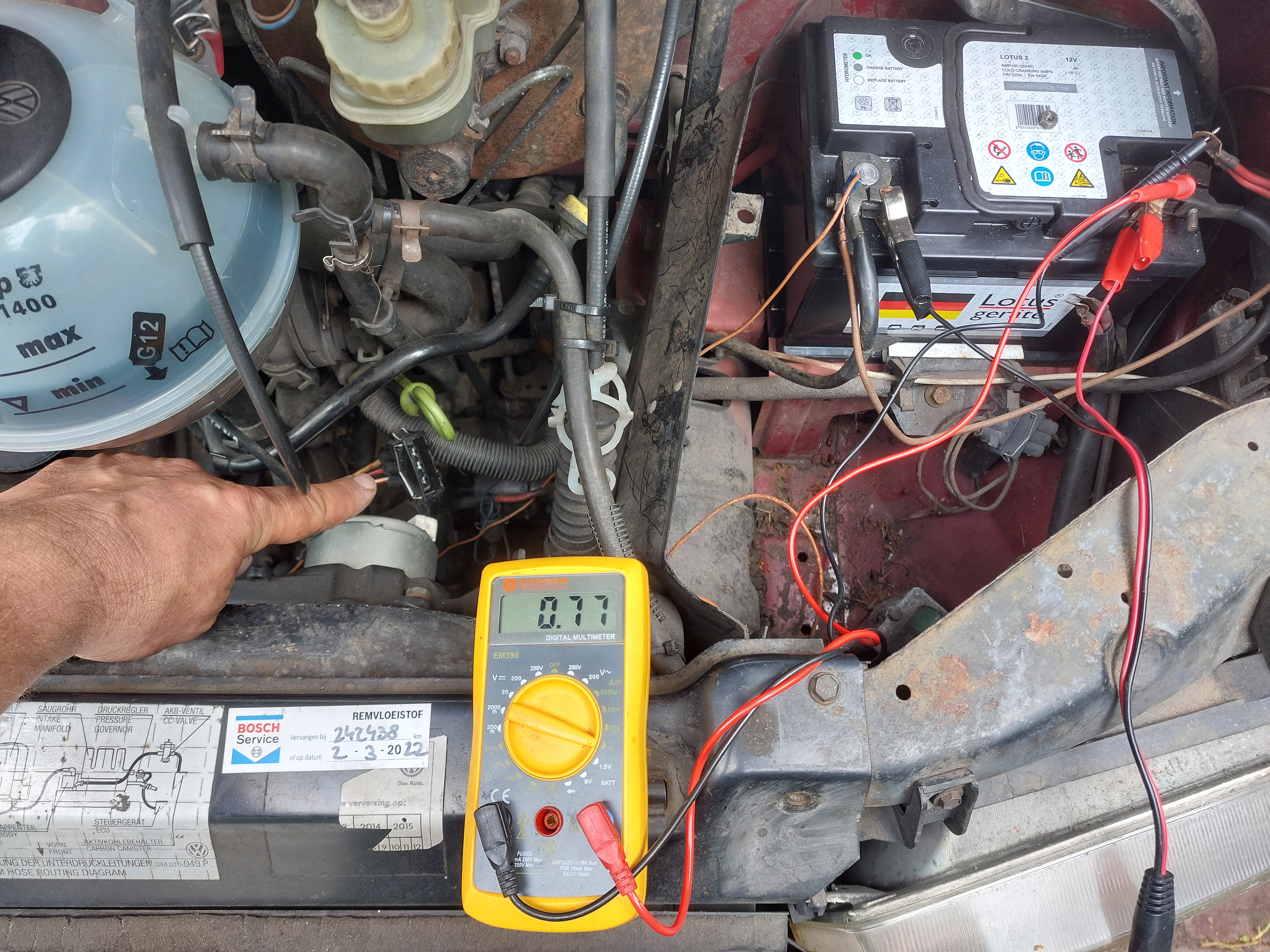 Ik vermoed ook dat het bij mij hetzelfde werkt als de T3, de benzine motor en koeling is volgens mij van een Passat en alles is anders dan de T4 diesels. Toen ik hem net had was het gelijk mis met de koeling, de zekering ( 19) brandde steeds door en geregeld met een kokende motor gestaan. Wat bleek de ventilatiemotor was uit zijn lagers gelopen en maakte sluiting. Na vervangen is het een tijd goed gegaan tot nu dus ik denk dat er door die sluiting destijds ergens een te warm geworden draad nu contact met massa maakt. Ik heb alles nagelopen en gemeten en ook rammelen met de draadboom doet niks er blijft nu zelf meer dan 1A lopen.