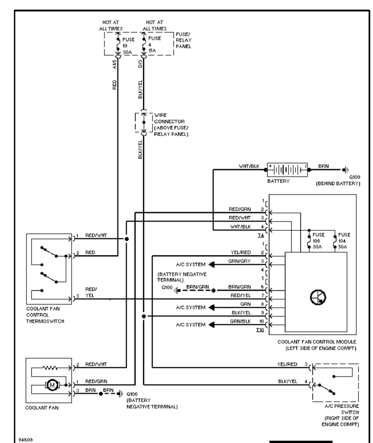Op de radiator zit een soort termoschakelaar die bij een bepaalde temperatuur 12V doorzet naar het relais neem ik aan en de ventilator laat draaien. Ook als die los is loopt er stroom, zit er nog iets tussen de thermoschakelaar - relais - ventilator?