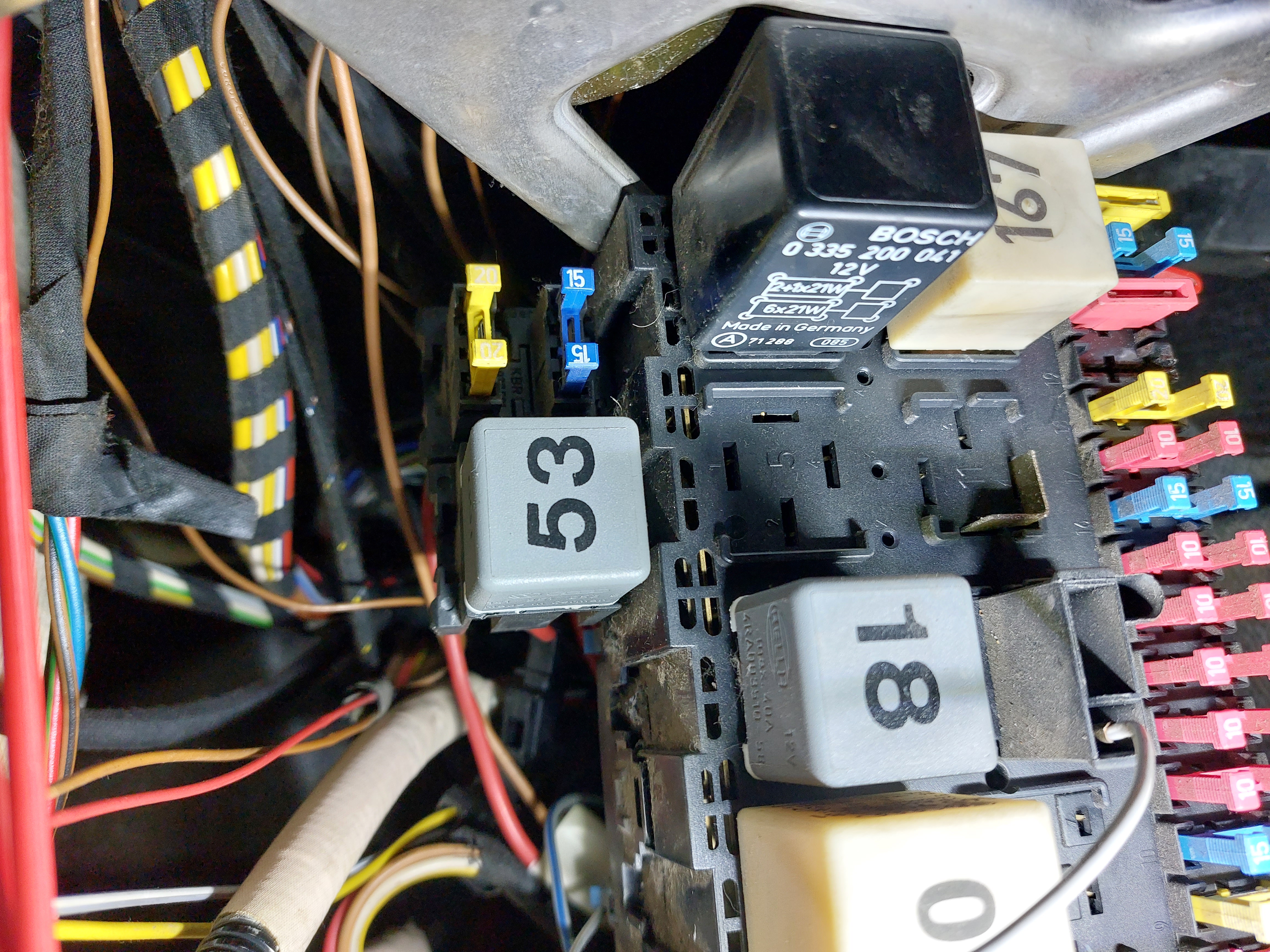 Heel erg bedankt voor de uitgebreide reactie, het principe bij mijn T4 uit 1991 lijkt denk ik heel erg op het schema, de kleuren zijn iets anders en wellicht is het principe simpler. Ik heb foto's gemaakt van de kabels en conectoren en denk dat die met 2 zekeringen en relais 53 dat regelgedeelte is.