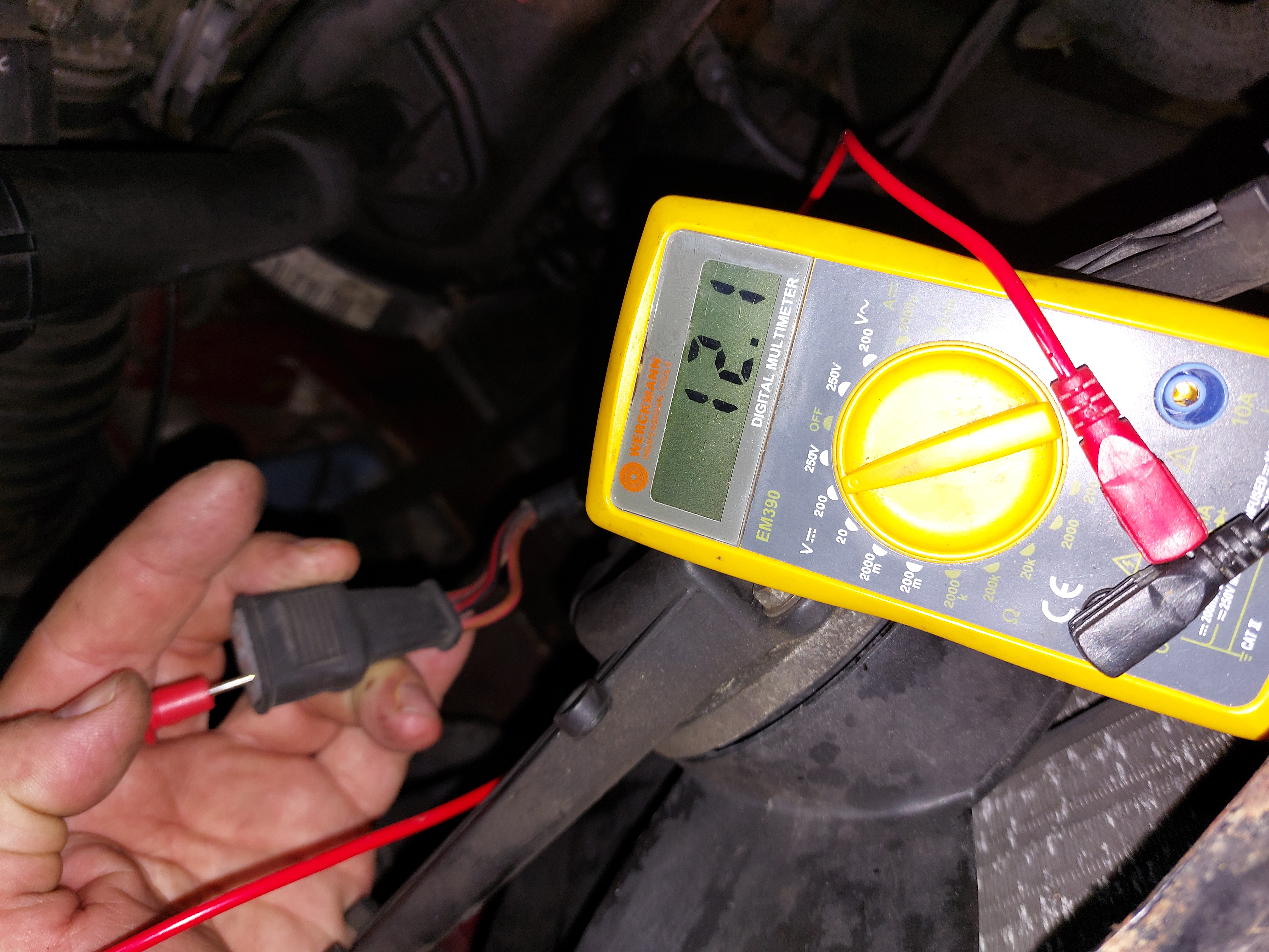 En testen van de ventilator kun je dus eenvoudig doen met losgenomen connector van de radiateur, en dan door een los draadje in de stekker te steken de 12V draad verbinden met één van de andere aansluitingen. Zou eigenlijk een standaard onderhoudsactie moeten zijn, bij mij gingen de fans niet aan door een draadbreuk ergens onder de linker voorlamp, aparte draad gelegd. Kwam ik na 1,5 jaar achter....