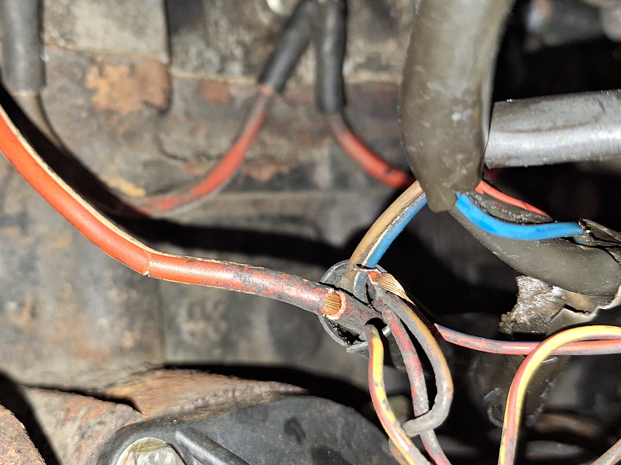 De draden zijn hersteld en voorzien van ribbelbuis. De dynamo heeft tot aan de startmotor een nieuwe 16mm2 draad.