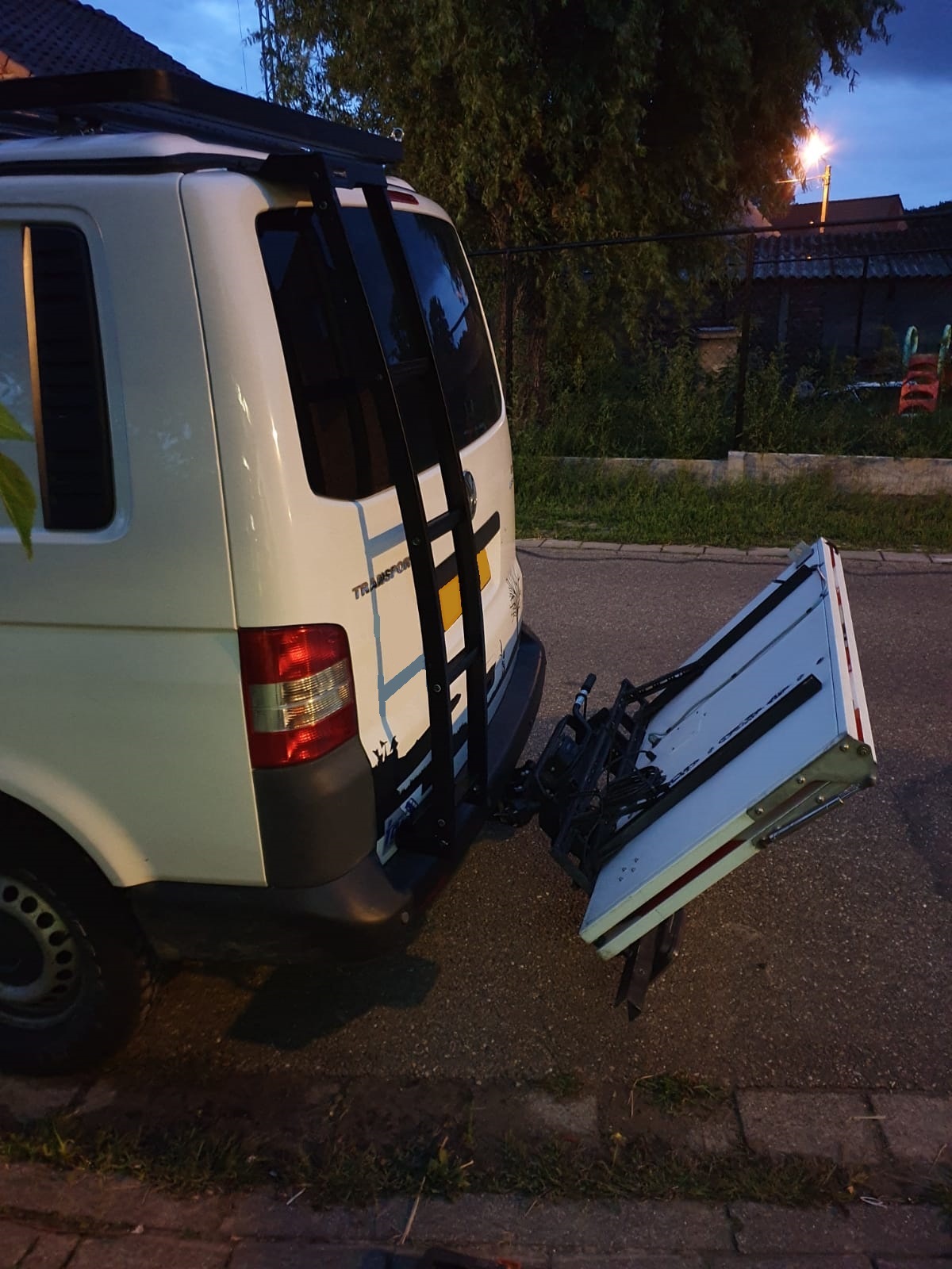 Soms gaat het wel sneller. Vorige week woensdag een ladder voor op de klep besteld en vandaag binnen en gemonteerd. Gaat goed met het dakrek, 5 cm speling bij open klep en met achterover geklapte bagagedrager ook ca. 5 cm. Kan ik ook verder met rear-dashcam in de trap te monteren en de extra werklampen/flitsers.