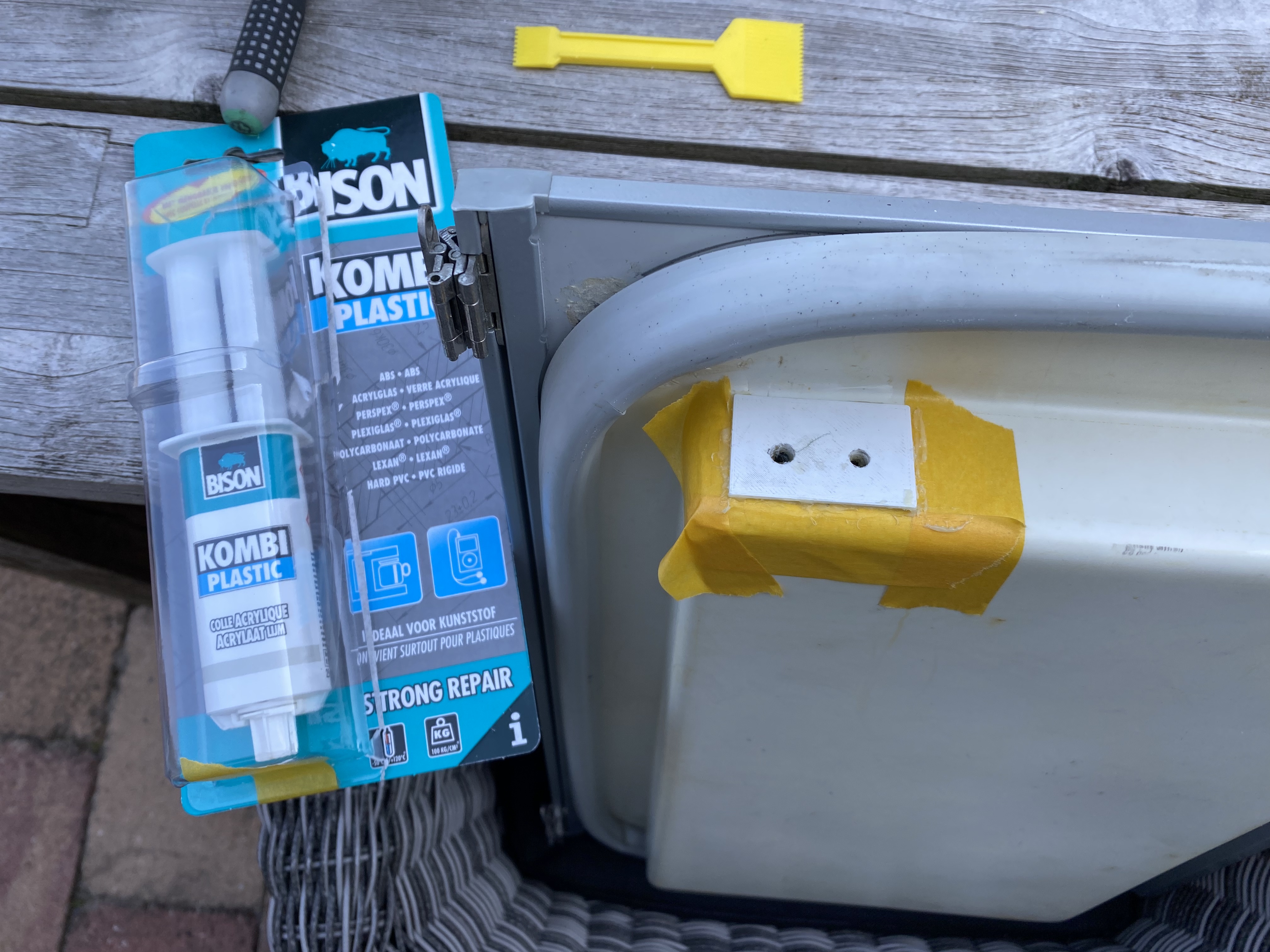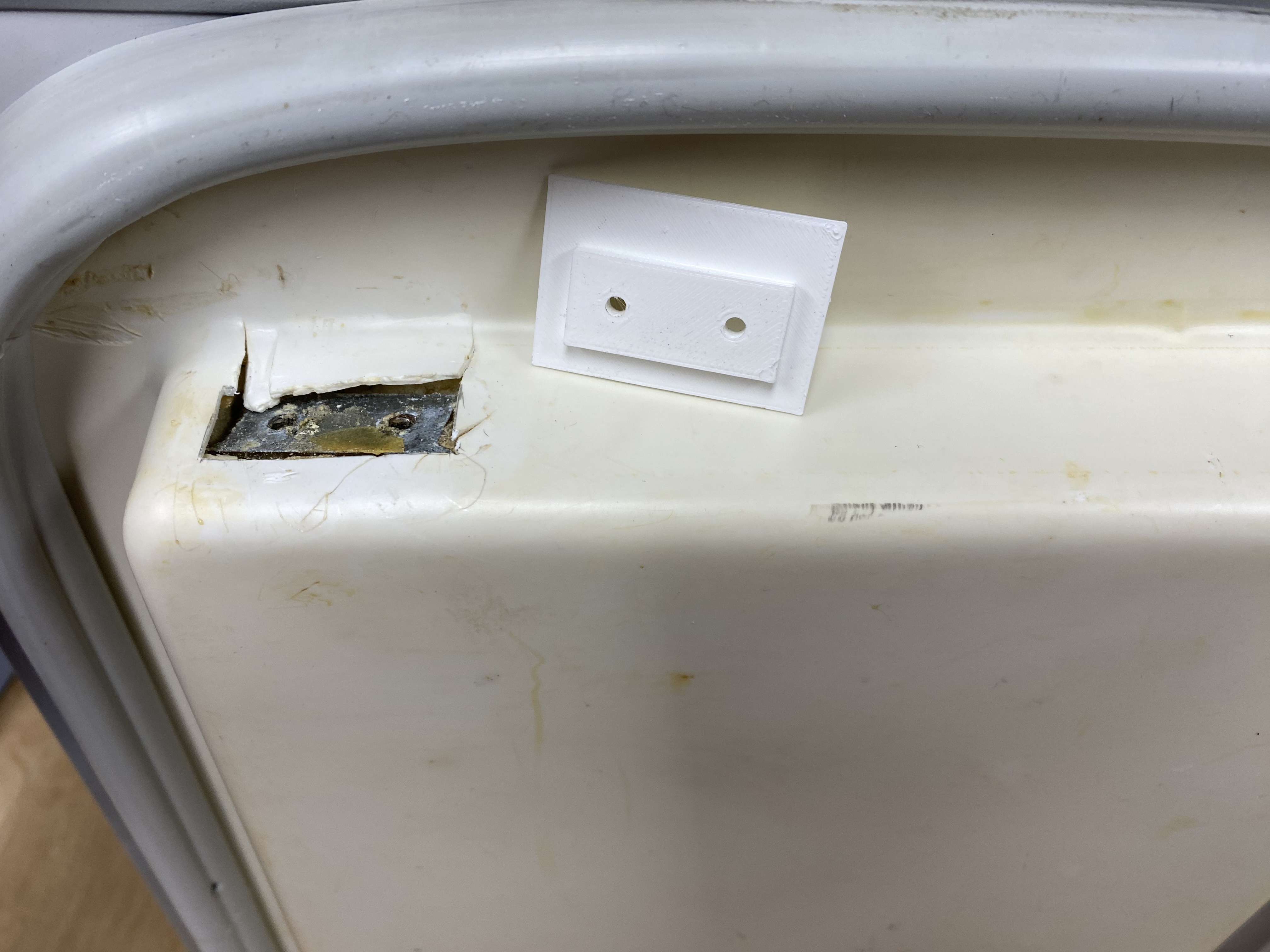 Heb een mooi passtukje geprint en met 2-componenten lijm vast gezet. Deksel werkt weer naar behoren.