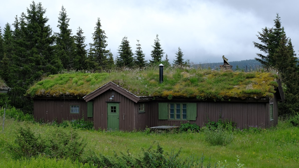 Vandaag hebben we geleerd dat overtreffende trappen leuk zijn, zeker als je laag begint. Pas om half tien werden we wakker. Met volle tevredenheid constateerde ik dat het twintig jaar oude tentzeil geen drup heeft doorgelaten. Het regent nog steeds en de wolken kleven bij wijze van spreken tegen onze ruiten aan. Dus vertrekken we naar de Grimsdalvegen. Rijdend over de E6 lieten we de grijze wolken en de harde regen achter ons. In Dovre was een leuk kerkje. Helaas ging het pas vanaf 14u open.